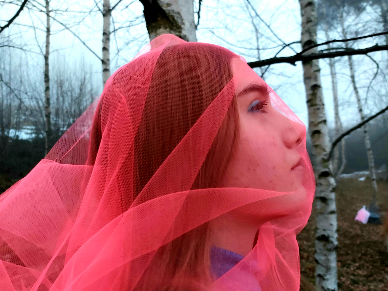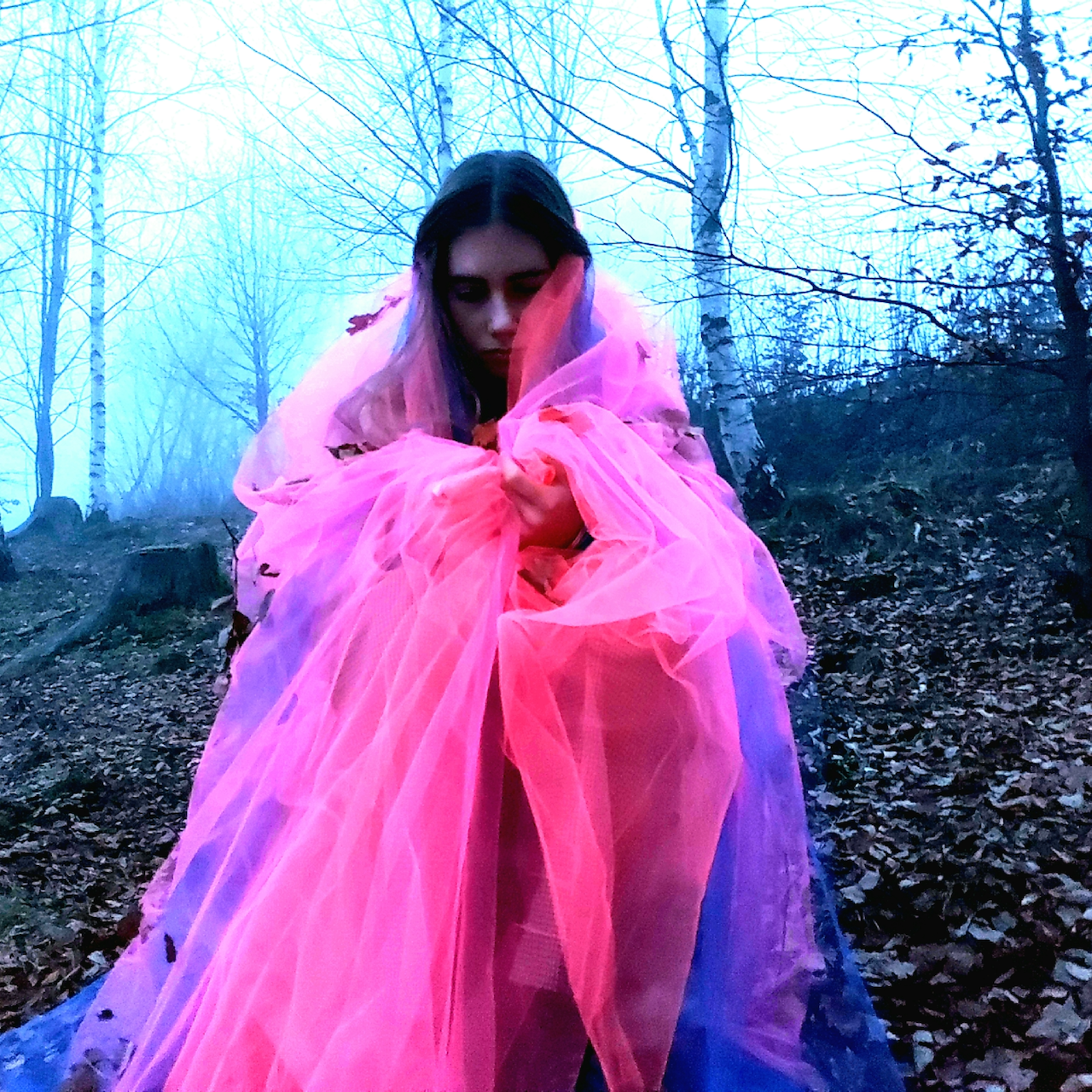 These are my first experimentations with more editorial photography. I had this idea of using coloured tulle in a foggy silver birch wood. This for me is when I really started thinking of colours and texture as my imagery. The aim is to show the ethereal feeling that the contact with nature can give.